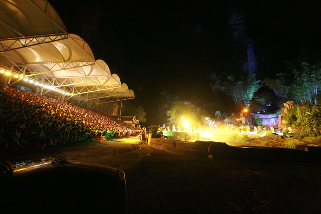 The Ancient Mystical Legend of Zhangjiajie 《武陵魂•梯瑪神歌》是一場(chǎng)記述土家族起源、演變、戰(zhàn)爭(zhēng)、生產(chǎn)生活等內(nèi)容的大型立體山水實(shí)景演出,揉合了音樂(lè)、舞蹈、文學(xué)等多種藝術(shù)形式,如幻如夢(mèng)的舞美燈光,搖曳生姿的原生態(tài)歌舞……濃縮了土家族數(shù)千年的發(fā)展歷史,400多名演員以自然淳樸的表演充分的展示了土家的民族文化特征,給游客帶來(lái)了耳目一新的感受。一場(chǎng)視聽(tīng)的饕餮盛宴,一曲驚天地、泣鬼神的曠世古歌,給人山水文化光影視聽(tīng)的享受!境銎罚簭埣医缣莠斏窀栉幕瘋鞑ビ邢薰尽