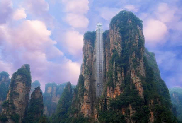 百龍?zhí)焯菀挥谑澜缱匀贿z產(chǎn)張家界武陵源風(fēng)景名勝區(qū),1999年9月動(dòng)工,2002年4月投入營(yíng)運(yùn),電梯的主要設(shè)備由德國(guó)知名電梯公司研究生產(chǎn),耗資人民幣1.8億元,被譽(yù)為“世界上最高、運(yùn)行速度最快、載重量最大的電梯”,也因此被載入吉尼斯世界紀(jì)錄。