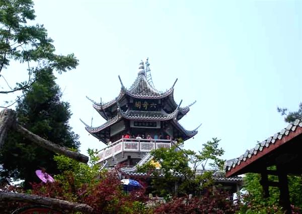 “六奇”是指山奇、水奇、云奇、石奇、動物奇、植物奇!敖搅魟氽E,我輩復(fù)登臨”;“欲窮千里目,更上一層樓”。站在閣頂,可以看到袁家界、楊家界、天子山、朝天觀、三姊妹峰……