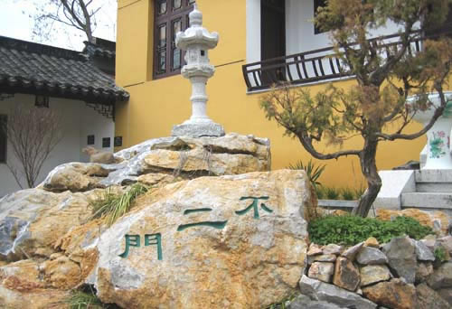 不二門取自佛家“不二法門”之意,正門的右壁上有沈從文先生題寫的“石門天鑿”四字,為沈先生生前最后一次回鄉(xiāng)時題寫。