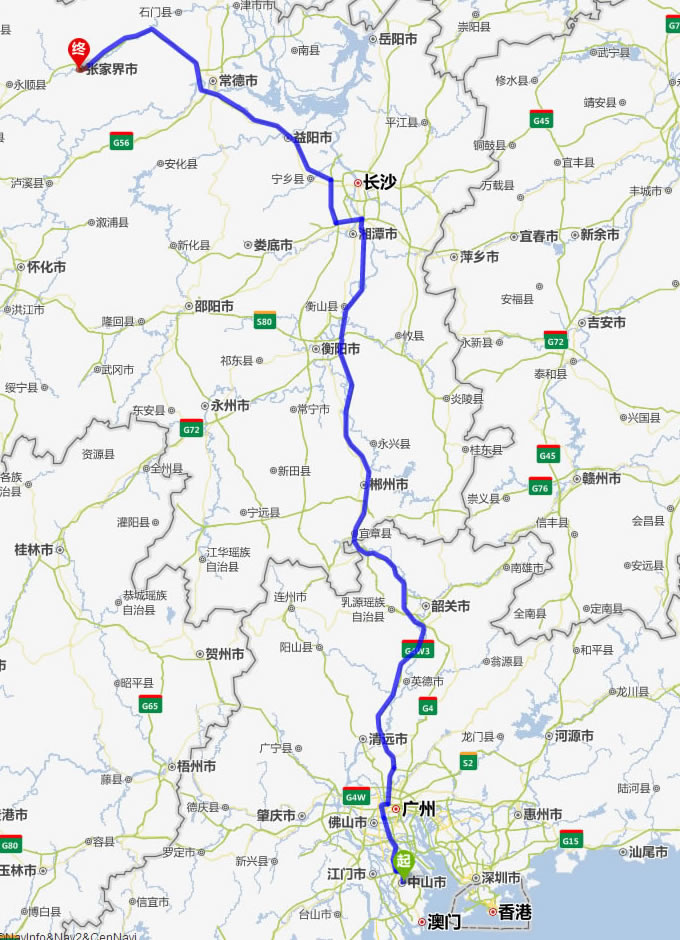 湛江去張家界自駕車自助游線路圖全程高速):