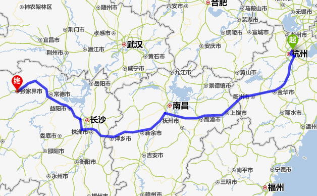余杭去張家界自駕車(chē)自助游線路圖全程高速):
