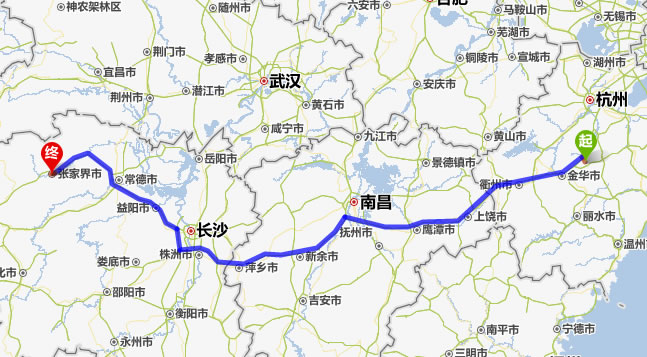 現(xiàn)在位置:張家界旅行社->交通指南->自駕車路線 -> 義烏到張家界旅游自駕車線路,義烏去張家界自己開車要多長時間,有多少公里