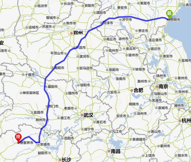 日照到張家界自駕車(chē)旅游線(xiàn)路(距離最短)