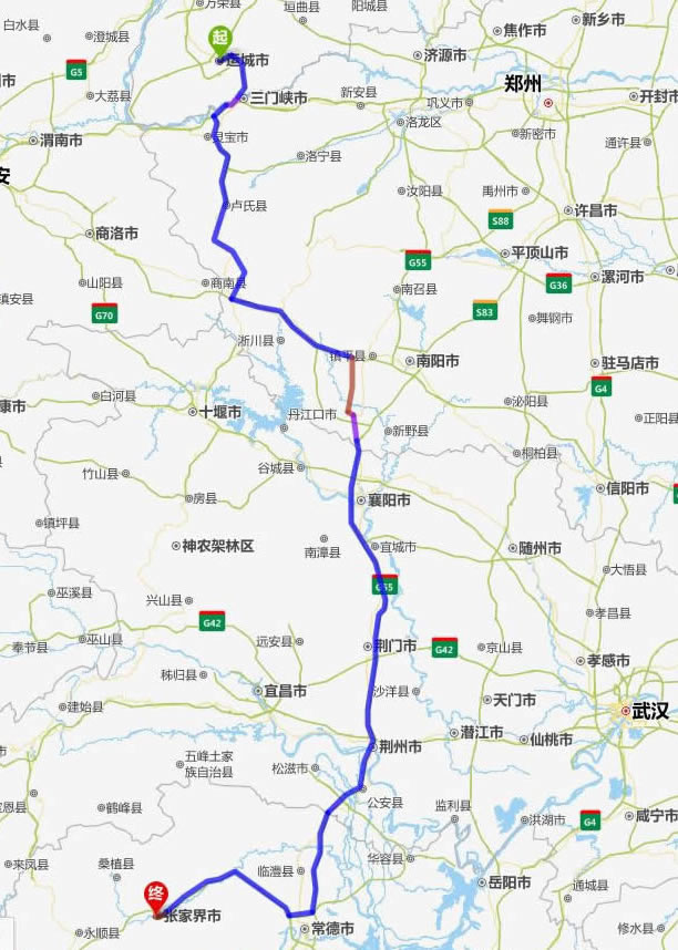 運(yùn)城去張家界自駕車(chē)自助游線(xiàn)路圖全程高速):