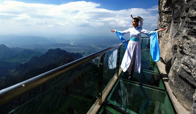 【張家界大峽谷玻璃橋】號稱世界最長、最高的全透明玻璃橋,玻璃橋總長430米、寬6米,橋面距谷底約300米,可站800人。橋面全部采用透明玻璃鋪設(shè),橋中心有全球最高的蹦極臺,整個工程無鋼筋支架,是一種全玻璃結(jié)構(gòu)的橋梁。玻璃橋建成后,將成為世界首座斜拉式高山峽谷玻璃橋;并創(chuàng)下世界最高最長玻璃橋、首次使用新型復(fù)合材料建造橋梁等多項世界之最!
